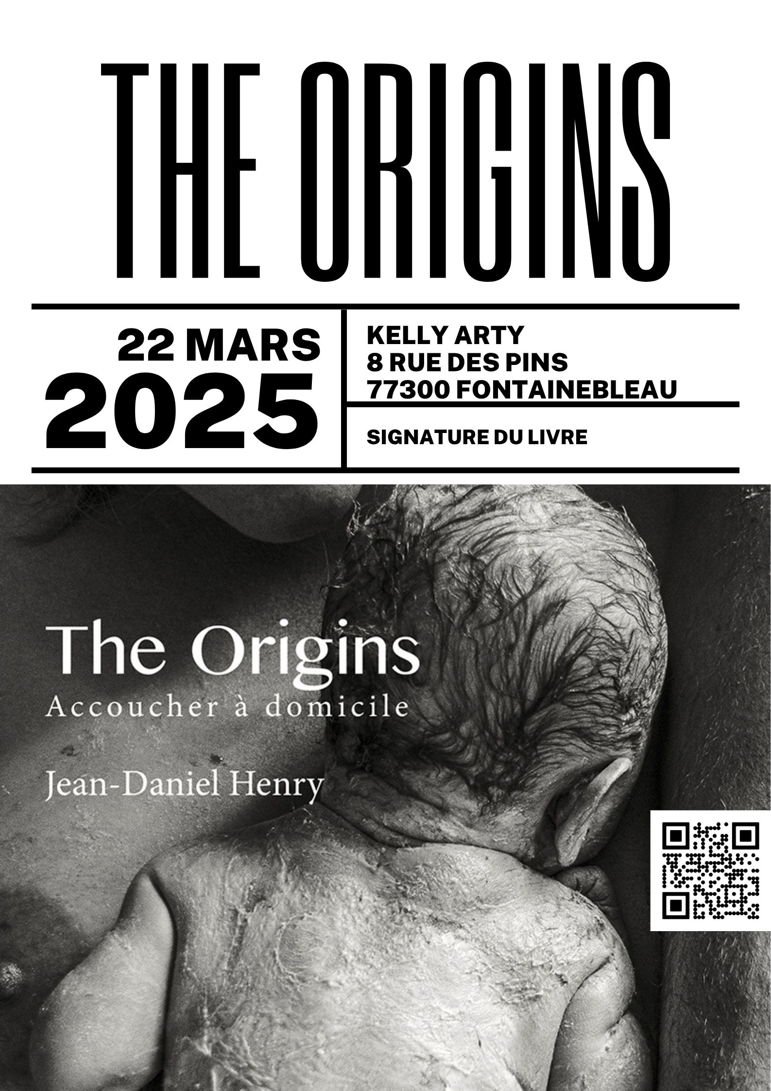 Conçue initialement pour annoncer la séance de signature du 22 mars 2025 à la galerie Kelly Arty de Fontainebleau, cette affiche est devenue un objet de collection pour les sympathisants du mouvement de la naissance respectée. Elle regroupe :