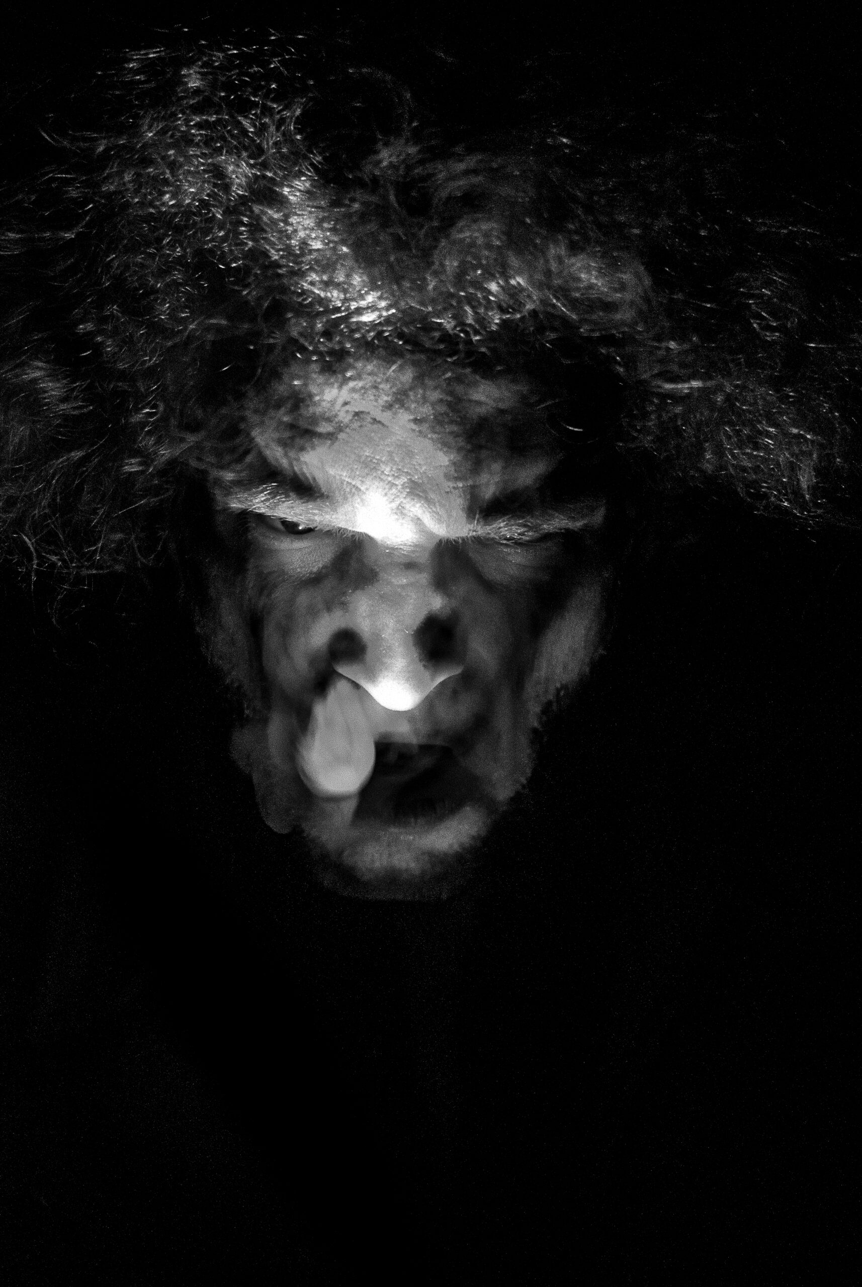 Château Brutal porte bien son nom sur ce cliché. Sous l’éclairage minimaliste, il nous sort une tronche d’acier qui rappelle que le rock, c’est aussi savoir s’enlaidir avec classe. C’est puissant, c’est sombre et ça ne fait pas dans la dentelle. Le contraste du noir donne à ce portrait une dimension presque sculpturale, où le ridicule touche au sublime.