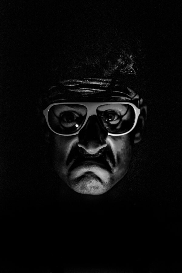Le patron s’est prêté au jeu de la “tronche” pure. Dans ce portrait issu de la série dans le noir, pas de saut de l’ange ni de paillettes. Juste Gunther, une lumière rasante et un rictus de combat qui sort de l’ombre. On y voit la tension, l’arrogance rock et surtout cette capacité à ne jamais se prendre au sérieux. C’est du brut, c’est frontal, c’est le leader des Airnadettes comme vous ne l’avez jamais vu.