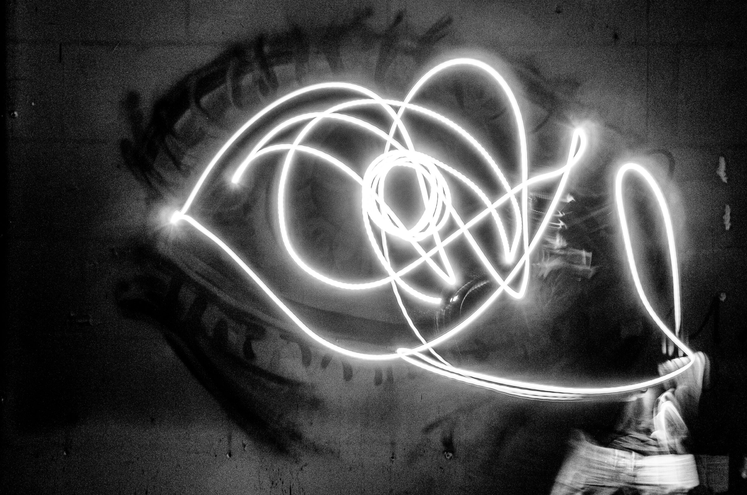 •  Cette œuvre est une sculpture de lumière pure. Le papier Fine Art boit littéralement le noir profond pour ne laisser jaillir que le tracé électrique de l’œil. La matité absolue du papier élimine tout reflet, laissant la poésie du geste s’exprimer avec une force brute. Le contraste entre le grain du papier et la fluidité de la ligne crée une vibration visuelle unique.