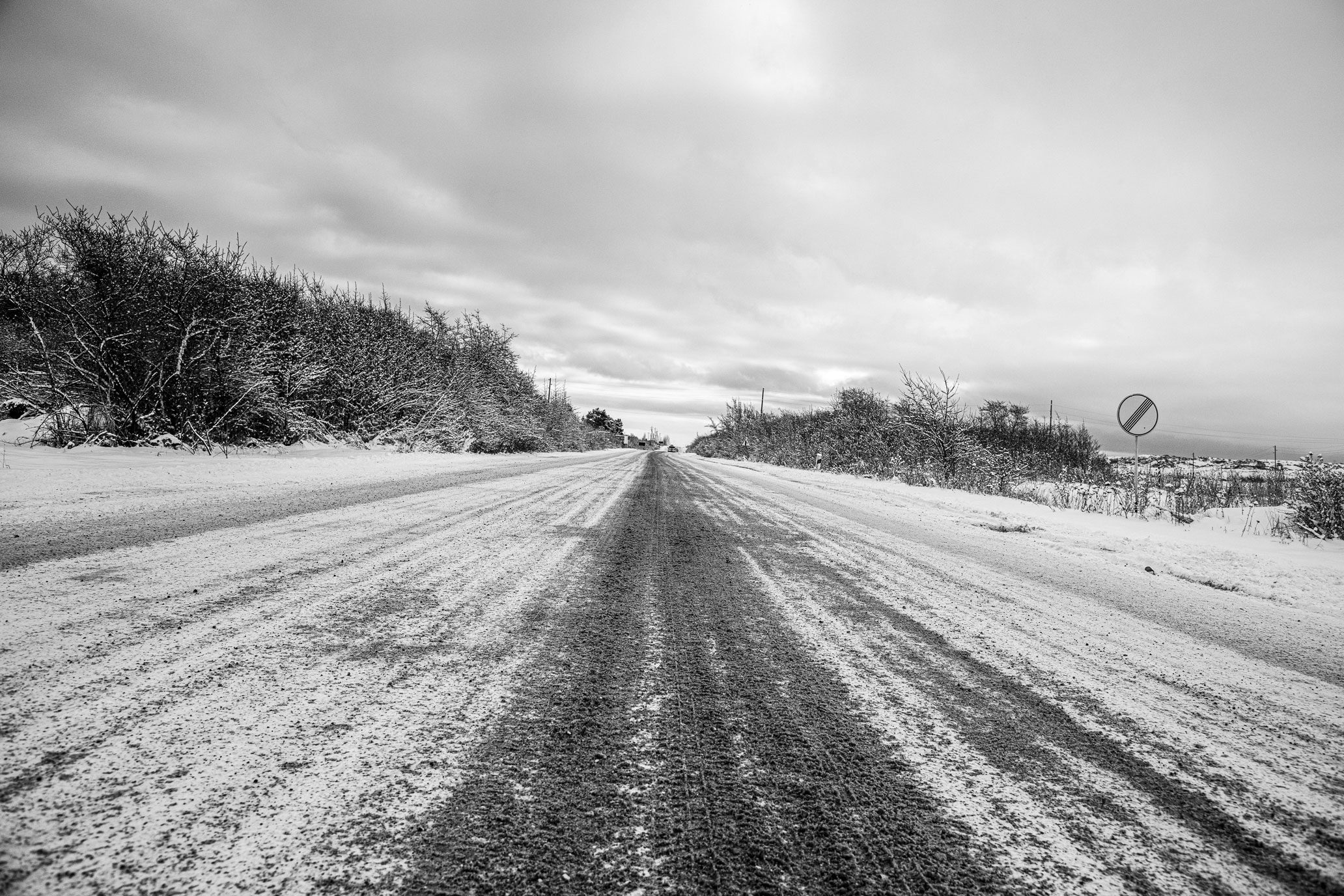 Une esthétique haut de gamme : Le choix du noir et blanc permet de sublimer les textures : chaque cristaux de givre et chaque aspérité de la route sont révélés avec une précision chirurgicale. Cette photographie s’inscrit dans une démarche de photographie d’art contemplative, où le vide et le silence prennent toute leur place.